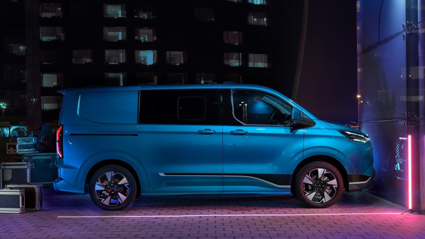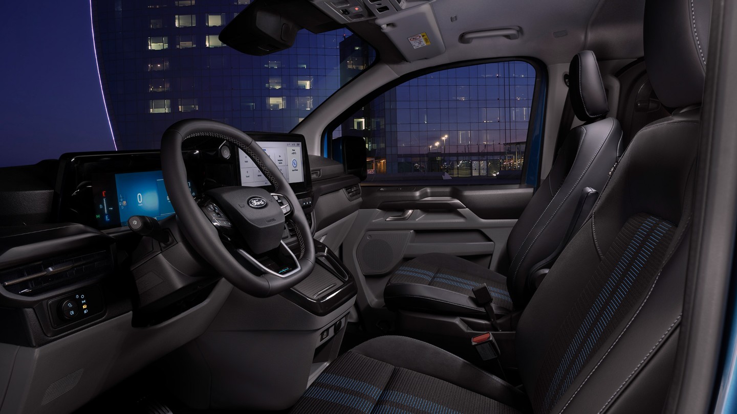 Le tout nouveau Transit Custom est doté de technologies avancées d'aide à la conduite⁽⁸⁾ qui peuvent vous aider dans des situations potentiellement dangereuses, quel que soit l'endroit où vous travaillez.