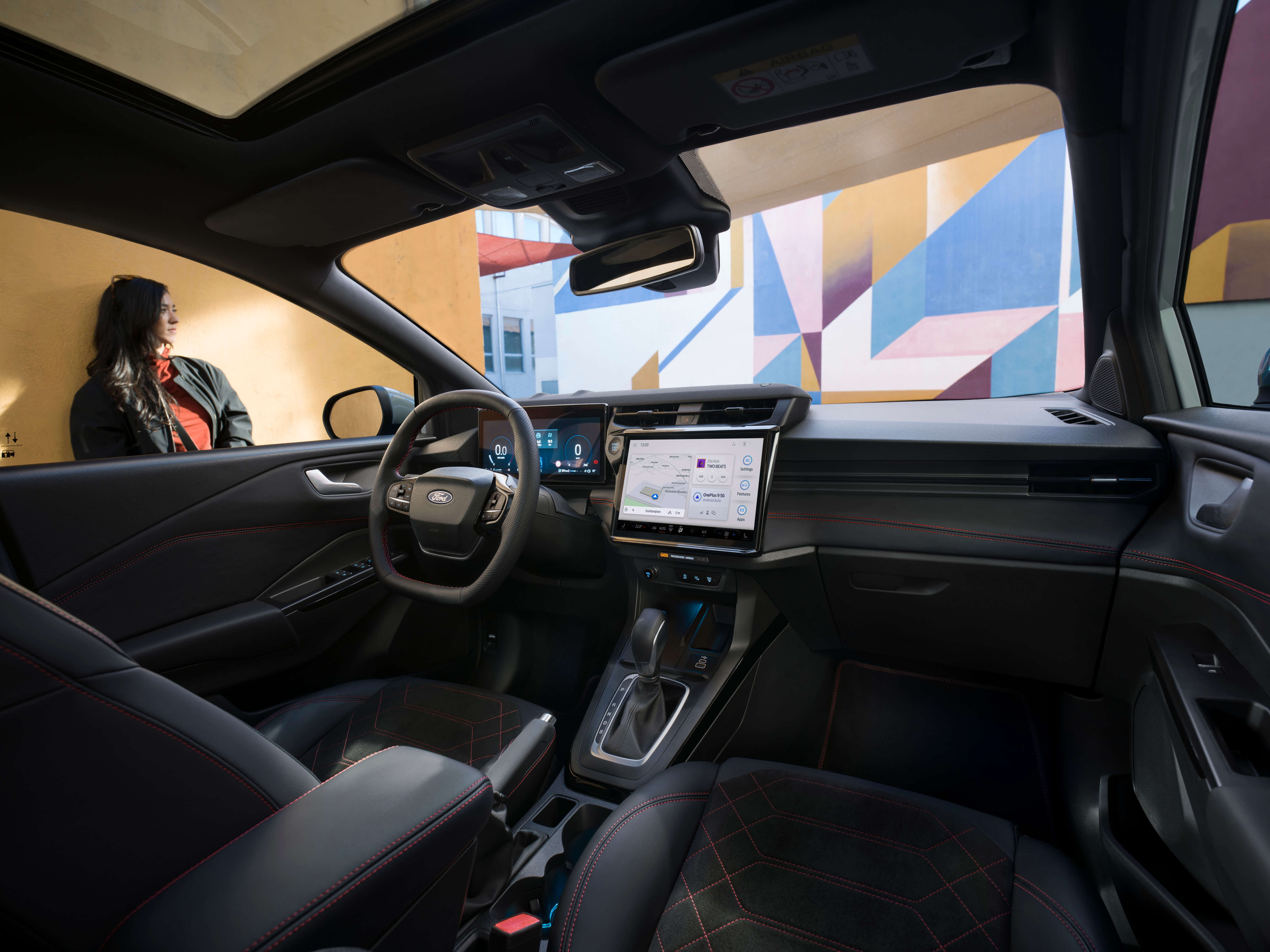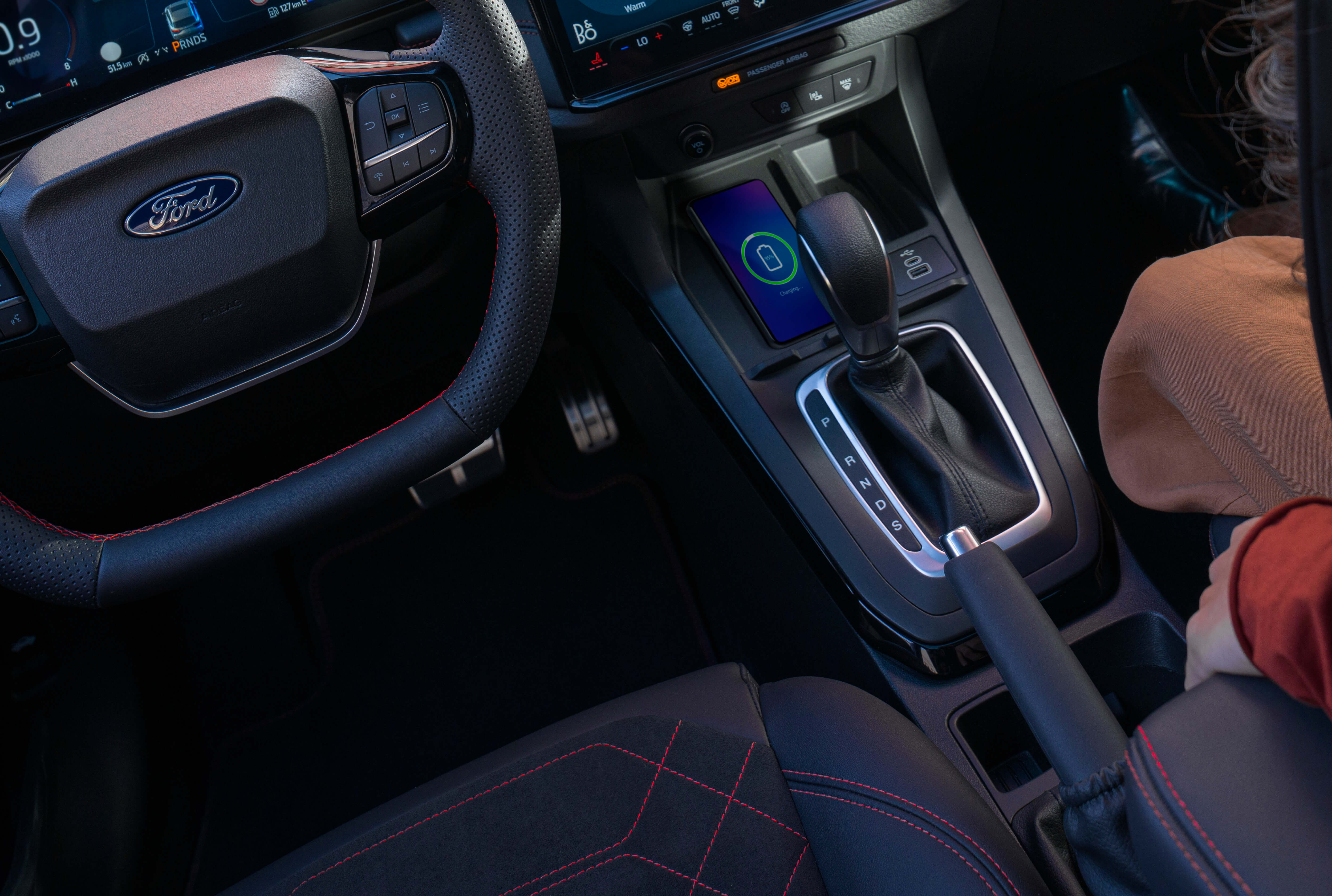 Tableau de bord numérique de 12,8 pouces ? Pour voir tout ce dont vous avez besoin. Un écran tactile SYNC4 de 12 pouces⁽¹⁾ toujours à jour. Circulation, météo, cartes et vos morceaux préférés. La recharge sans fil⁽³⁾ pour rechargez votre smartphone grâce au chargeur sans fil intégré dans la console centrale pour un intérieur épuré.